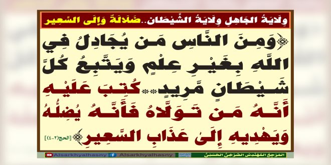 [وِلَايَةُ الجَاهِلِ وِلَايَةُ الشَّيْطَان..ضَلَالَةٌ وَإلَى السَّعِير]…{وَمِنَ النَّاسِ مَن يُجَادِلُ فِي اللَّهِ بِغَيْرِ عِلْمٍ وَيَتَّبِعُ كُلَّ شَيْطَانٍ مَّرِيدٍ**كُتِبَ عَلَيْهِ أَنَّهُ مَن تَوَلَّاهُ فَأَنَّهُ يُضِلُّهُ وَيَهْدِيهِ إِلَىٰ عَذَابِ السَّعِيرِ}[الحج( 3-4)]