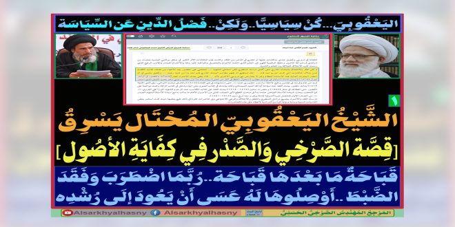 [1]:[الشَّيْخُ اليَعْقُوبِيّ المُحْتَال يَسْرِقُ {قِصَّة الصَّرْخِي وَالصَّدْر فِي كِفَايَةِ الأصُول}] . قَبَاحَةٌ مَا بَعْدَهَا قَبَاحَة..قَبَاحَةٌ مَا وَرَاءَهَا قَبَاحَة..رُُبَّمَا اضْطَرَبَ وَفَقَدَ الضَّبْطَ ..أَوْصِلُوهَا لَهُ عَسَى أَنْ يَعُودَ إلَى رُشْدِه الشَّيْخُ اليَعْقُوبِيّ المُحْتَال يَسْرِقُ [قِصَّة الصَّرْخِي وَالصَّدْر فِي كِفَايَةِ الأصُول]
