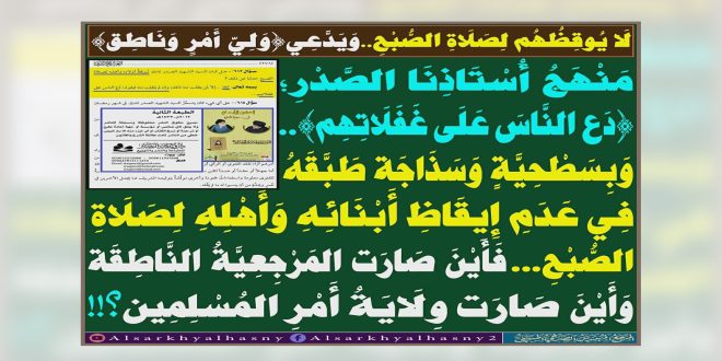 .[لَا يُوقِظُهُم لِصَلَاةِ الصُّبْحِ..وَيَدَّعِي{وَلِيّ أَمْرٍ وَنَاطِق}]