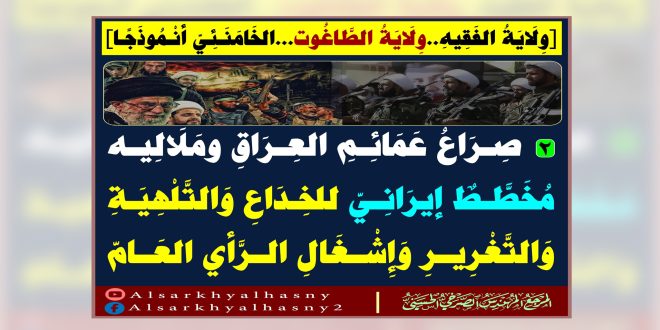 [2]: صِـ ـرَاعُ عَمَائِمِ العِرَاقِ ومَلَالِيه مُخَطَّطٌ إيرَانِيّ للخِـ ـدَاعِ وَالتَّلْهِيَةِ وَالتَّغْـ ـرِيرِ وَإِشْغَالِ الرَّأْيِ العَامّ