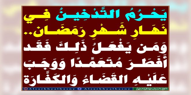 يَحْرُمُ التَّدْخِينُ فِي نَهَارِ شَهْرِ رَمَضَان..وَمَن يَفْعَلُ ذَلِكَ فَقَد أَفَطَرَ مُتَعَمِّدًا وَوَجَبَ عَلَيْهِ القَضَاءُ وَالكَفَّارَة المَرْجِعُ المُهَنْدِسُ الصَّرْخِيُّ الحَسَنِيُّ البث المباشر: ( 11 ) مساء www.youtube.com/@Alsarkhyalhasny .... #العلماء_امضوا_تكفير_معاويه