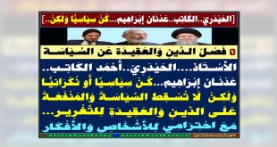 أكمل القراءة »[الحَيْدَرِيّ..الكَاتِب..عَدْنَان إبْرَاهِيم…كُنْ سِيَاسِيًّا وَلَكِنْ..] [1] فَصْلُ الدِّينِ وَالعَقِيدَة عَن السِّيَاسَة الأُسْتَاذ….الحَيْدَرِيّ..أَحْمَد الكَاتِب..عَدْنَان إبْرَاهِيم…كُنْ سِيَاسِيَّا أَو نُكْرَانِيًّا وَلَكِنْ لَا تُسْقِط السِّيَاسَةَ وَالمَنْفَعَةَ عَلَى الدِّينِ وَالعَقِيدَةِ لِلتَّغْرِير…مَعَ احْتِرَامِي لِلأَشْخَاصِ وَالأَفْكَار