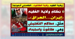أكمل القراءة »[وِلَايَةُ الفَقِيهِ..وِلَايَةُ الطَّاغُـ ـوت…الخَامَنَـ ـئِيّ أنْـمُوذَجًـا] [1]: نِظَامُ وِلَايَة الفَقِيْهِ(إيْرَان..العِرَاق)= مِثْلُ= مَحَاكِم التَّفْتِيشِ وَهِيَ= طَاغُـ ـوتٌ وَاسْتِـ ـبْدَاد